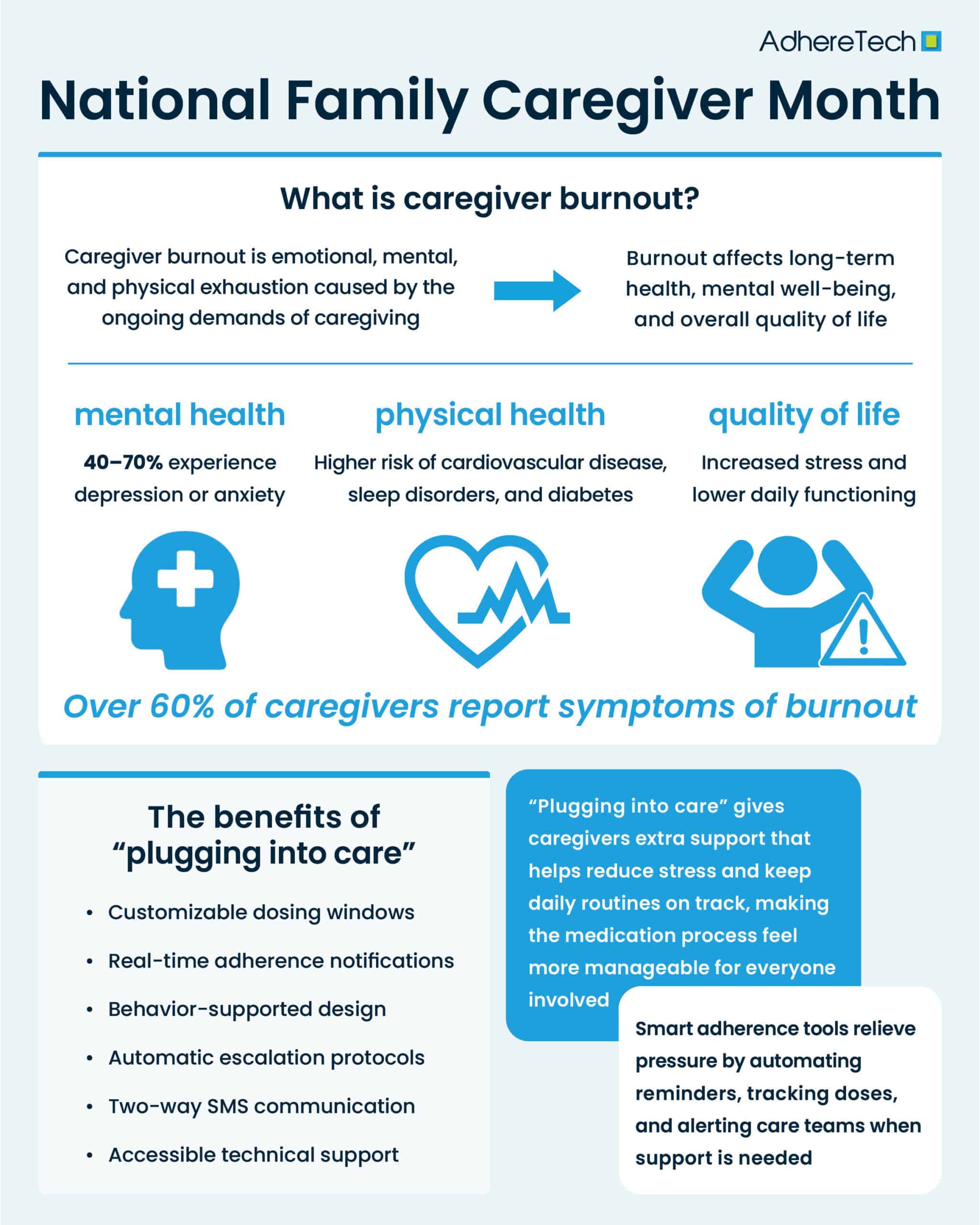 At AdhereTech, we’re proud to be part of that connection. By combining smart technology with human-centered design, we aim to reduce caregiver burden, improve patient outcomes, and create systems of care that empower rather than exhaust. When caregivers are supported, patients benefit – and the entire healthcare system becomes stronger.